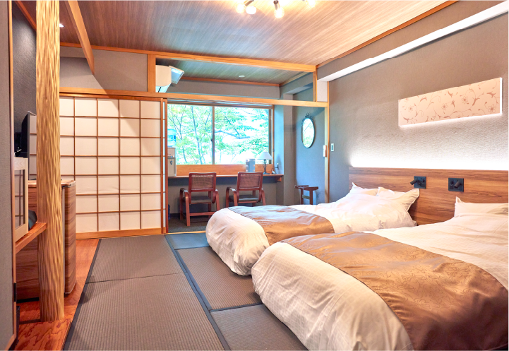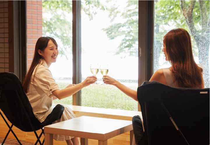 お部屋にお荷物を置いたらまずは大浴場で汗を流して、寛ぎスペースでしばしまったり。お部屋に戻って地元食材を使用したお鍋を囲みながらわいわいお食事を楽しんだり、気の置けないお友達との時間をお過ごしください。